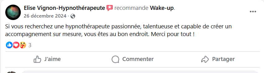 En 2018, j’ai créé Wake-Up! pour accompagner celles et ceux qui souhaitent se libérer de leurs blocages, retrouver équilibre et confiance, et révéler leur plein potentiel.
